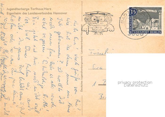 73614824 alte Postkarte Torfhaus Harz Jugendherberge postalisch gelaufen Erhaltung siehe scans [WerneD78] KatCode: 11110003153001