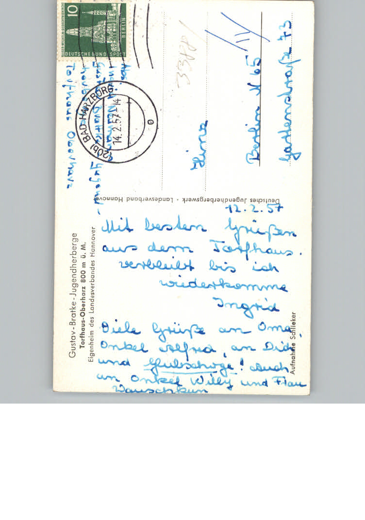 31167764 Torfhaus Harz Jugendherberge Gustav Bratke postalisch nicht gelaufen KatCode: 11110003153001