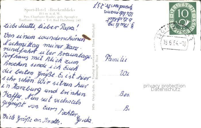 72056378 alte Postkarte Torfhaus Harz Sport Hotel Brockenblick postalisch gelaufen Erhaltung siehe scans KatCode: 11110003153001