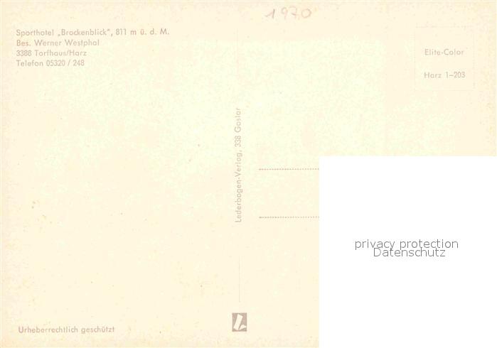 72898853 Torfhaus Harz Sporthotel Brockenblick postalisch nicht gelaufen Erhaltung siehe scans [FriedD77] KatCode: 11110003153001