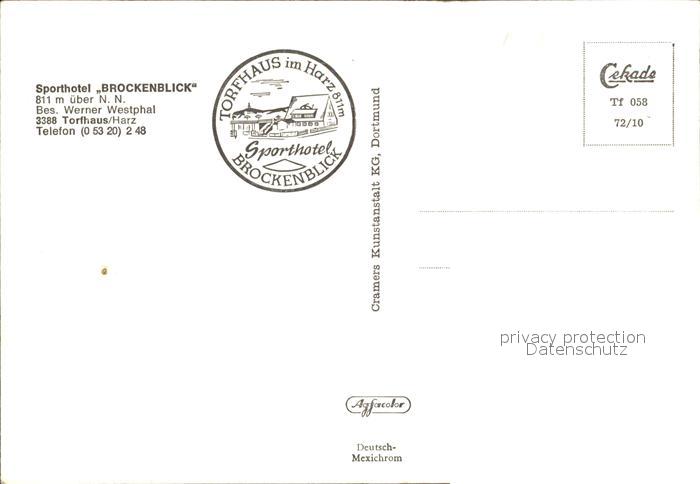 72416707 Torfhaus Harz Sporthotel Brockenblick postalisch nicht gelaufen Erhaltung siehe scans KatCode: 11110003153001