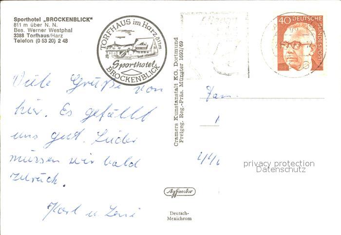 72231648 alte Postkarte Torfhaus Harz Sporthotel Brockenblick postalisch gelaufen Erhaltung siehe scans KatCode: 11110003153001