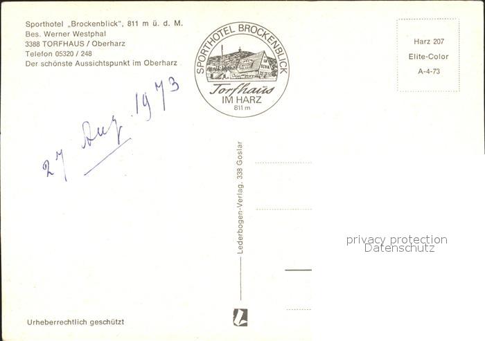 72307035 Torfhaus Harz Sporthotel Brockenblick Hirsch postalisch nicht gelaufen Erhaltung siehe scans KatCode: 11110003153001