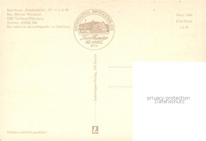 73677416 Torfhaus Harz Sporthotel Brockenblick Oderteich Okertalsperre postalisch nicht gelaufen Erhaltung siehe scans [WerneD78] KatCode: 11110003153001