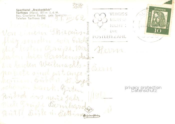 73727239 alte Postkarte Torfhaus Harz Sporthotel Brockenblick Panorama postalisch gelaufen Erhaltung siehe scans [WerneD78] KatCode: 11110003153001