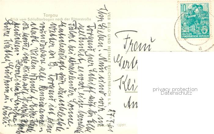 73750559 alte Postkarte Torgau Blick vom Schlosstorbogen zur Ritterstrasse postalisch gelaufen Erhaltung siehe scans [WerneD78] KatCode: 11110014389320
