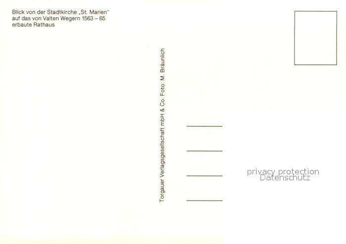73684189 Torgau Blick von Stadtkirche auf Rathaus von Valten Wegern gebaut postalisch nicht gelaufen Erhaltung siehe scans [LiesaD40] KatCode: 11110014389320