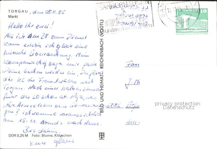 72115929 alte Postkarte Torgau Markt postalisch gelaufen Erhaltung siehe scans KatCode: 11110014389320