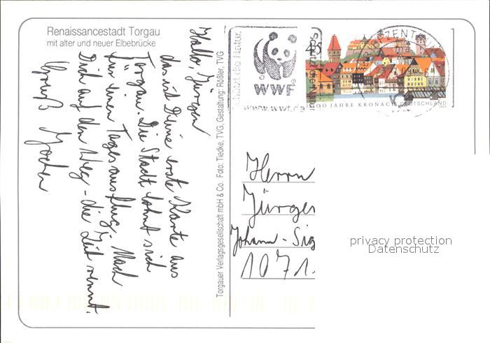 72235355 alte Postkarte Torgau Renaissancestadt mit alter und neuer Elbebruecke Fliegeraufnahme postalisch gelaufen Erhaltung siehe scans KatCode: 11110014389320