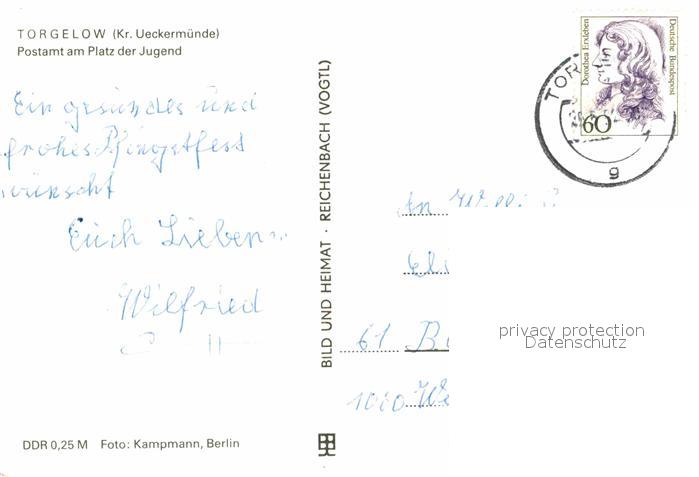 72782447 alte Postkarte Torgelow Postamt Platz der Jugend postalisch gelaufen Erhaltung siehe scans [LiesaD40] KatCode: 11110013062058