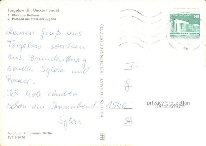 72922587 alte Postkarte Torgelow Rathaus Postamt Platz der Jugend postalisch gelaufen Erhaltung siehe scans [NatalD47] KatCode: 11110013062058