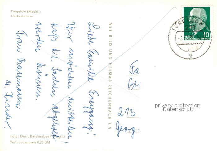 73134408 alte Postkarte Torgelow Ueckerbruecke Kirche postalisch gelaufen Erhaltung siehe scans [FriedD77] KatCode: 11110013062058
