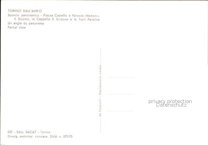 Torino dall aereo Piazza Castello Palazzo Madama Duomo Cappella S Sindone Torri Palatine postalisch nicht gelaufen Erhaltung siehe scans