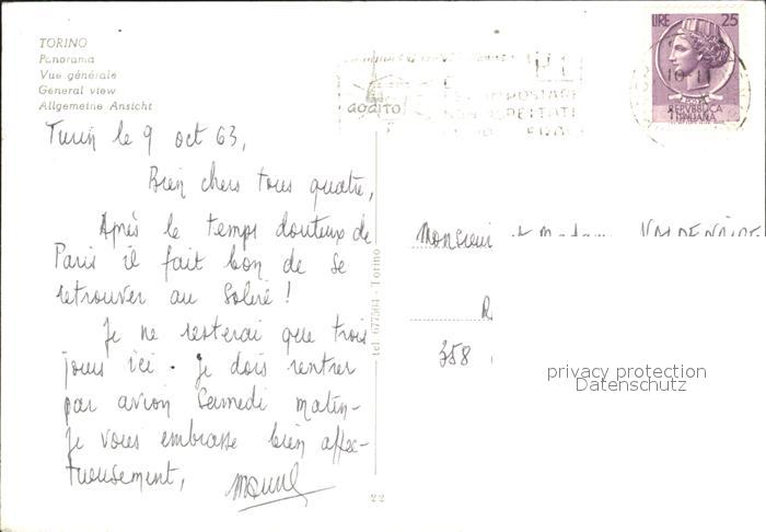 old postcard Torino Fliegeraufnahme postalisch gelaufen Erhaltung siehe scans