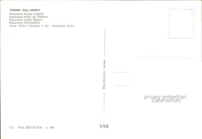 Torino Fliegeraufnahme Schlossplatz postalisch nicht gelaufen Erhaltung siehe scans
