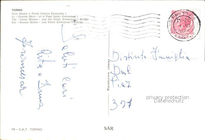 old postcard Torino Grosse Mutter Viktor Emmanuel I Bruecke postalisch gelaufen Erhaltung siehe scans