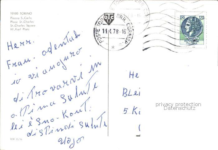 old postcard Torino Piazza San Carlo postalisch gelaufen Erhaltung siehe scans