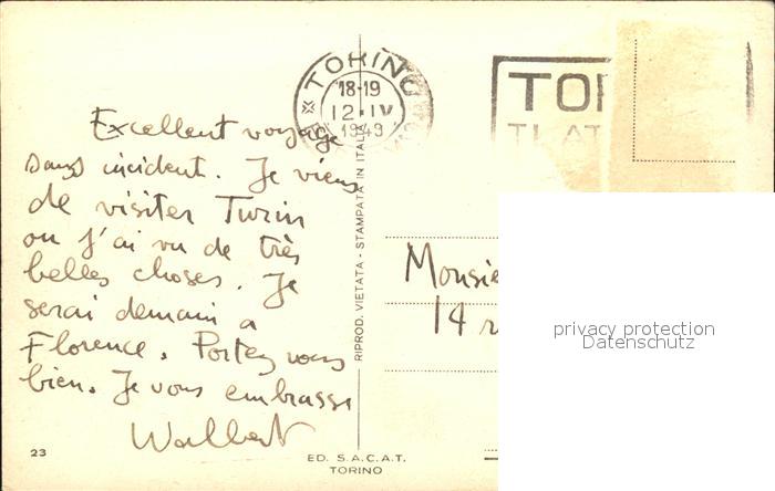 old postcard Torino Via Roma et statue del Po e della Dora postalisch gelaufen Erhaltung siehe scans