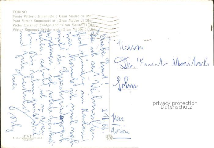 old postcard Torino Vittorio Emanuele Bruecke Gran Madre di Dio postalisch gelaufen Erhaltung siehe scans