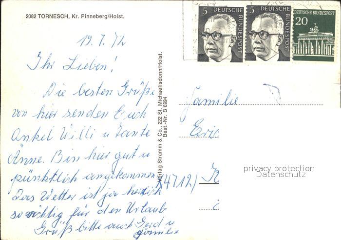 72456296 alte Postkarte Tornesch Kirche Ortsansichten postalisch gelaufen Erhaltung siehe scans KatCode: 11110001056048