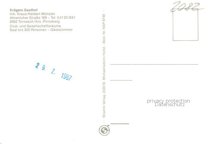 73757813 Tornesch Kroegers Gasthaus Ahrenlohe postalisch nicht gelaufen Erhaltung siehe scans [LiesaD40] KatCode: 11110001056048