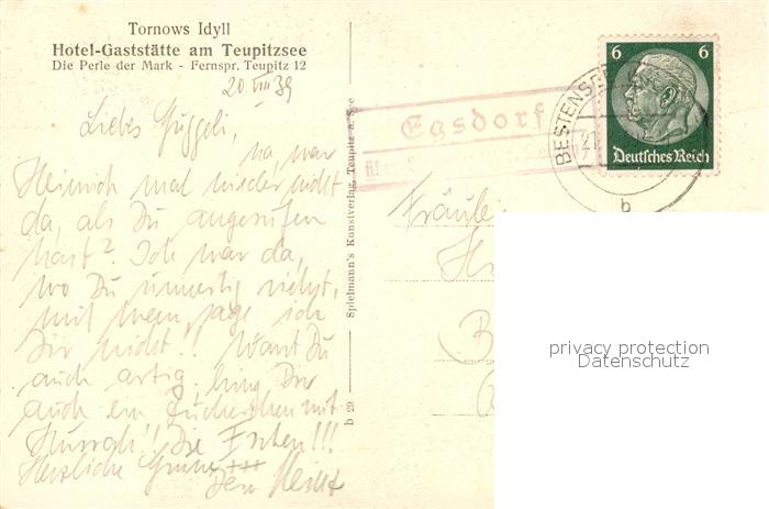 33085658 alte Postkarte Tornow Teupitz Restaurant Hotel am Teupitzsee Laubengang postalisch gelaufen Erhaltung siehe scans [LiesaD40] KatCode: 11110012061492