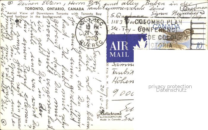 old postcard Toronto Canada Aerial view of Downtown Toronto Bay Harbour postalisch gelaufen Erhaltung siehe scans