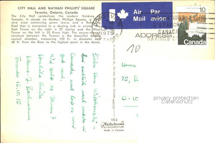 old postcard Toronto Canada City Hall Nathan Philipps Square postalisch gelaufen Erhaltung siehe scans