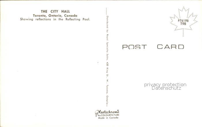 Toronto Canada City Hall Reflecting Pool postalisch nicht gelaufen Erhaltung siehe scans