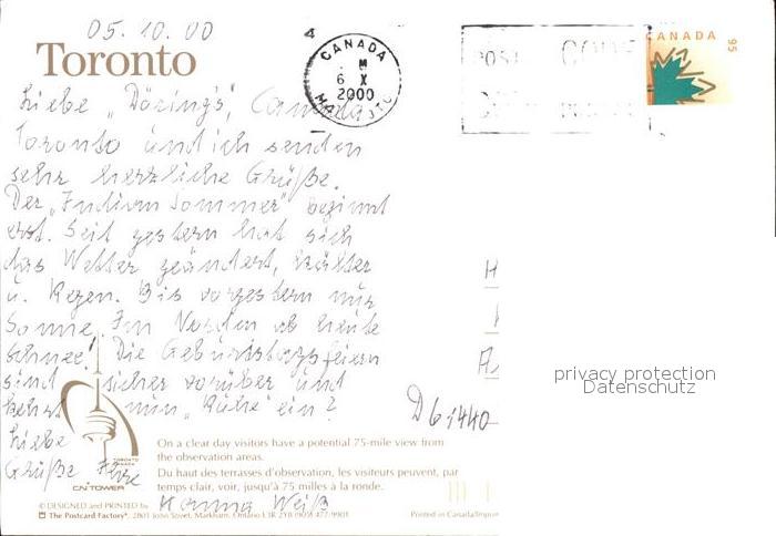 old postcard Toronto Canada CN Tower postalisch gelaufen Erhaltung siehe scans