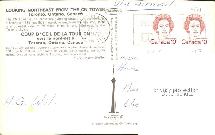 old postcard Toronto Canada CN Tower postalisch gelaufen Erhaltung siehe scans