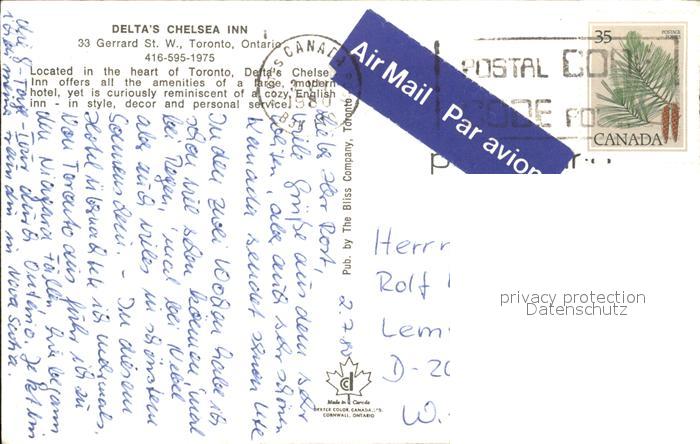 old postcard Toronto Canada Delta S Chelsea Inn postalisch gelaufen Erhaltung siehe scans