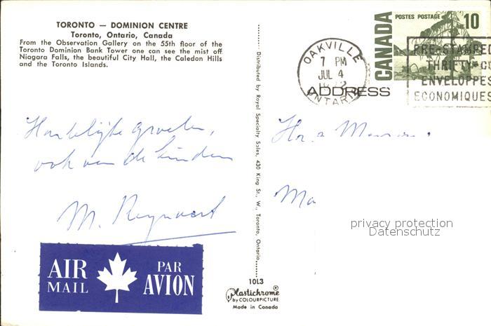 old postcard Toronto Canada Dominion Centre postalisch gelaufen Erhaltung siehe scans