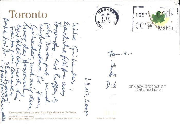 old postcard Toronto Canada Downtown Toronto as seen from high above the CN Tower postalisch gelaufen Erhaltung siehe scans