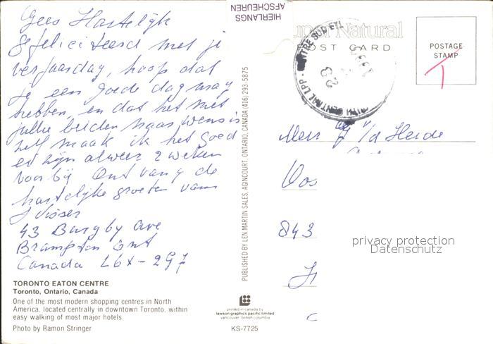 old postcard Toronto Canada Eaten Center postalisch gelaufen