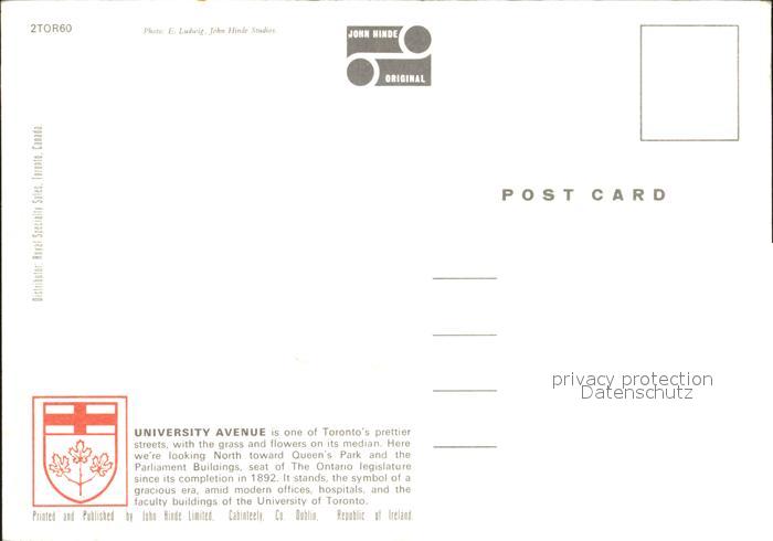 Toronto Canada Fliegeraufnahme University Avenue postalisch nicht gelaufen Erhaltung siehe scans