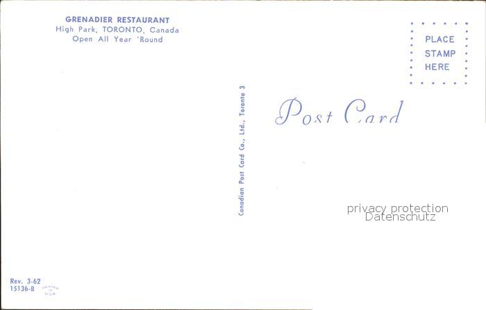 Toronto Canada Grenadier Restaurant High Park postalisch nicht gelaufen Erhaltung siehe scans