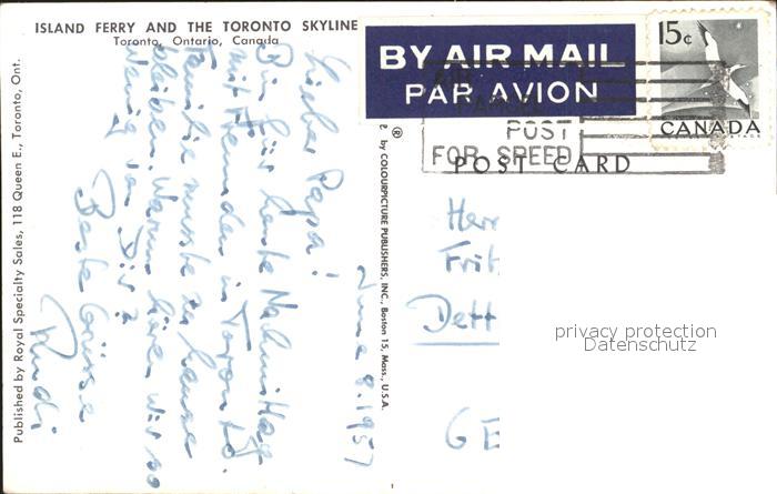 old postcard Toronto Canada Island Ferry Skyline Skyscraper postalisch gelaufen