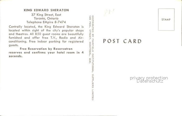 Toronto Canada King Edward Sheraton Illustration postalisch nicht gelaufen Erhaltung siehe scans