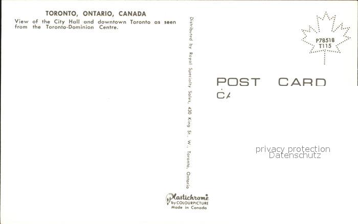 Toronto Canada Luftaufnahme City Hall postalisch nicht gelaufen Erhaltung siehe scans