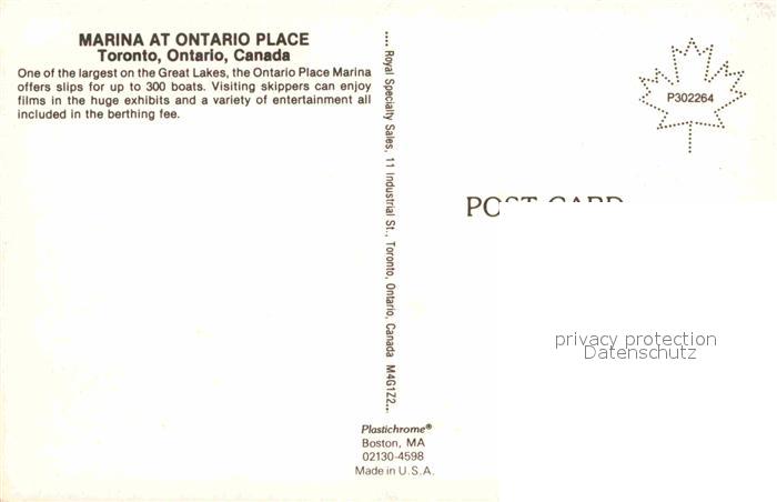Toronto Canada Marina at Ontario Place postalisch nicht gelaufen Erhaltung siehe scans [LiesaD40]