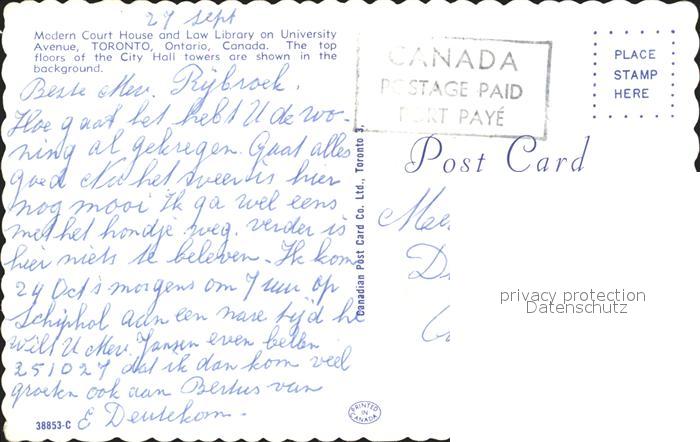 old postcard Toronto Canada Modern Court House and Law Library on University Ave postalisch gelaufen Erhaltung siehe scans