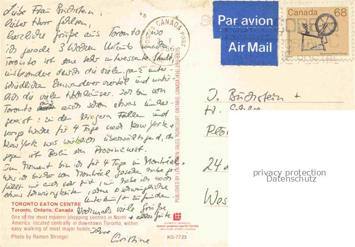 74092289 old postcard TORONTO Canada Moderner Schoping Center Einkaufshaus Zentrun postalisch gelaufen Erhaltung siehe scans [IrynaD87] KatCode: 14110