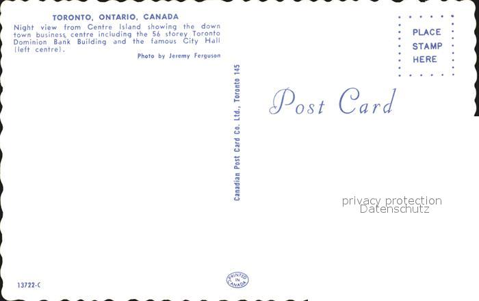 Toronto Canada Nachtaufnahme Centre Island postalisch nicht gelaufen Erhaltung siehe scans