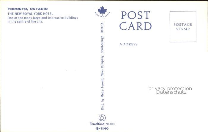 Toronto Canada New Royal York Hotel postalisch nicht gelaufen Erhaltung siehe scans