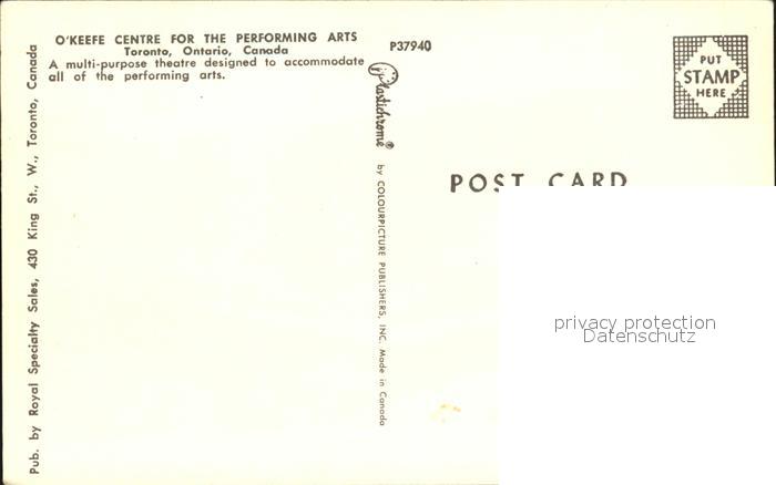 Toronto Canada O Keefe Centre for the Performing Arts postalisch nicht gelaufen Erhaltung siehe scans
