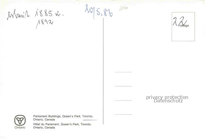 74091671 TORONTO Canada Ontario Hotel Parlement Queens Park postalisch nicht gelaufen Erhaltung siehe scans [IrynaD87] KatCode: 14110