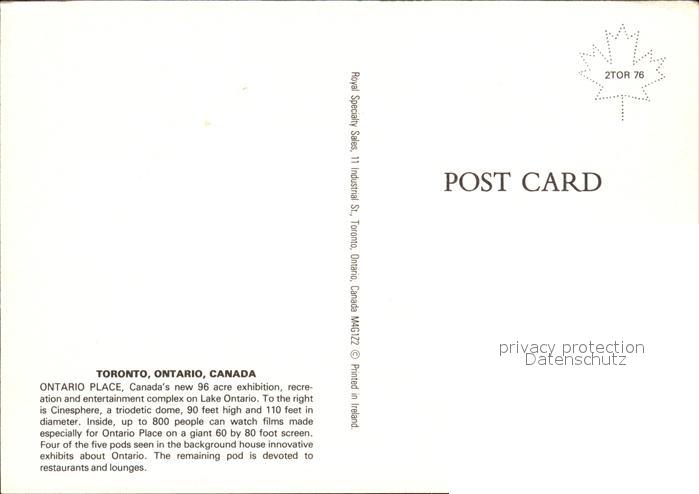 Toronto Canada Ontario Place postalisch nicht gelaufen Erhaltung siehe scans [WerneD78 kt117box]