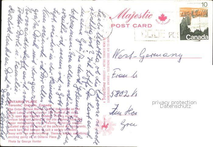 old postcard Toronto Canada Ontario Place postalisch gelaufen Erhaltung siehe scans