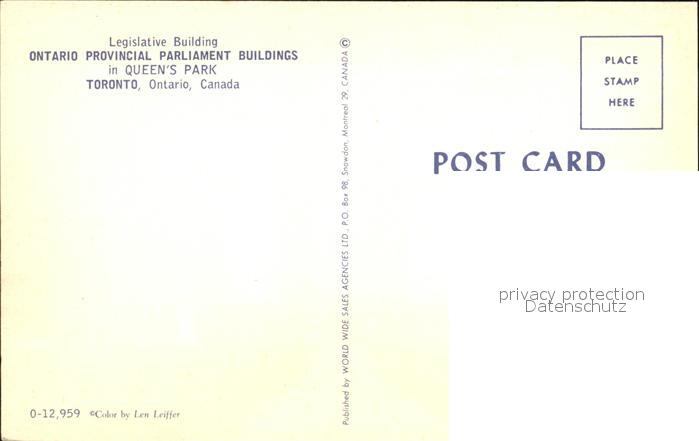 Toronto Canada Ontario Provincial Parliament Buildings postalisch nicht gelaufen Erhaltung siehe scans